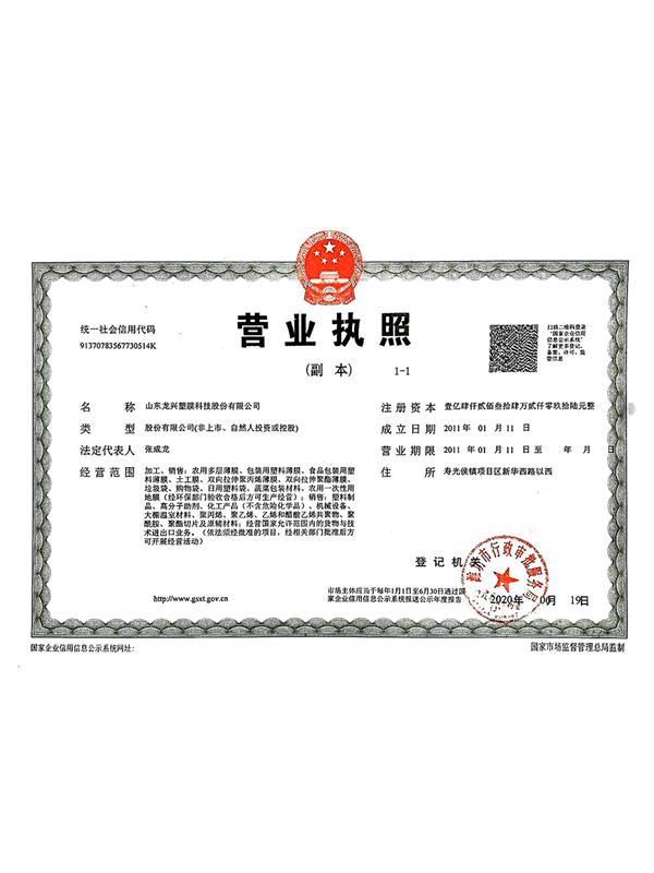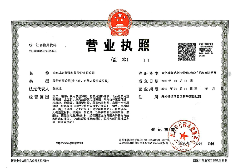 山東龍興塑膜科技股份有限公司前身為山東壽光龍興農(nóng)膜有限公司組建于2011年,2018年10月重組,目前是壽光市國有控股公司、高新技術(shù)企業(yè),是專業(yè)生產(chǎn)高檔農(nóng)用薄膜、工業(yè)用薄膜的企業(yè),是一家以產(chǎn)品制造為主,集科研開發(fā)、產(chǎn)品設(shè)計、技術(shù)服務(wù)于一體的綜合性企業(yè)。公司現(xiàn)有職工228人,各類工程技術(shù)人員97人,管理人員20余人,注冊資金14234.2096萬元,總資產(chǎn)102314萬元,目前是壽光市國有控股公司、高新技術(shù)企業(yè)。公司是中國塑料加工工業(yè)協(xié)會農(nóng)膜專業(yè)委員會會員單位,中國復(fù)合材料工業(yè)協(xié)會會員單位,中國塑料加工工業(yè)協(xié)會雙向拉伸聚酯薄膜專業(yè)委員會會員單位...